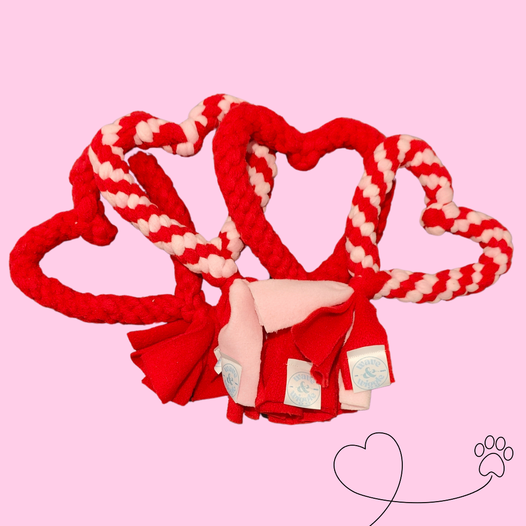 Suzanne O'Rourke I have super chewers who love to tug - and there’s 5 of them. These lovely hearts are super well made and are holding up to daily play. Unlike many other toys, they are still in one piece almost a week later and have endured being dragged to the garden, soaked and dragged back inside again. Definitely standing up to the tug of love test ❤️